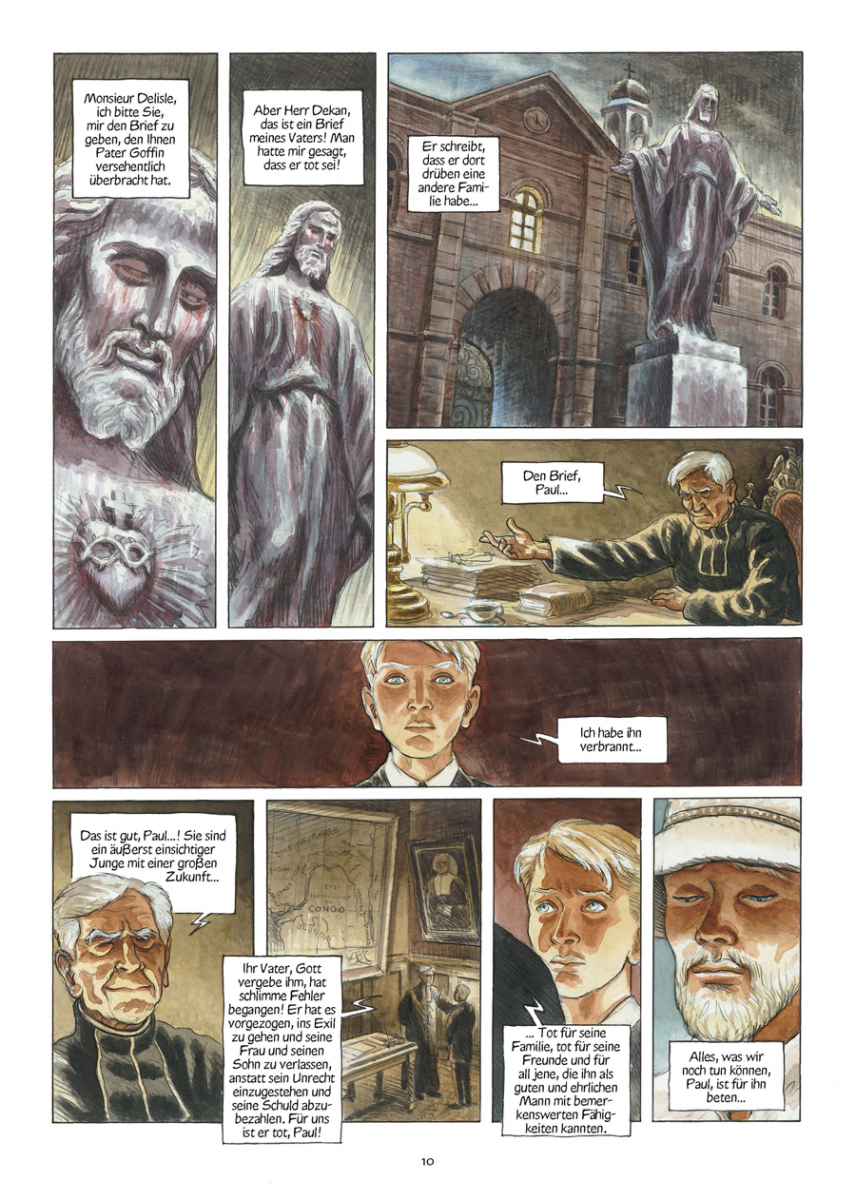 Ihr feines Gespür für historische Comics an exotischen Orten hat das Szenaristen-Ehepaar Charles spätestens mit »India Dreams« eindrucksvoll unter Beweis gestellt. »Africa Dreams« hat ein ungleich ernsteres Thema, das aus den Perspektiven verschiedener Zeitgenossen wie des jungen Missionars Paul Delisle oder des Forschers Henry Morton Stanley aufgefächert wird. Zeichner Frédéric Bihel illustriert aber auch die Magie von Land und Leuten und lässt den Zauber Afrikas aus den Seiten strahlen.