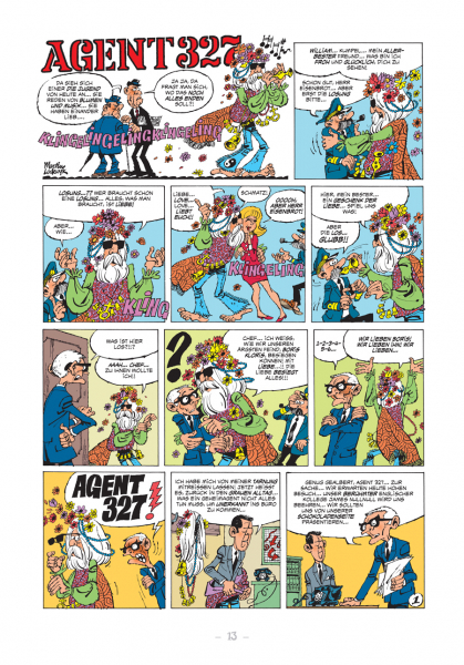 Zehn weitere Storys mit Agent 327 aus der wilden Zeit von Beat und Bond um 1970, mit einem Gastspiel von Kollege James Nullnull und einem kleinen sportlichen Schwerpunkt dank Fußball-Weltpokal und Olympia 1972 – in München! Ein neuerlicher Triumph der Verkleidungskunst und ein humoristischer Hochgesang auf Wagemut, Unerschütterlichkeit und das faszinierende Talent, auch aus hoffnungslosesten Situationen immer wieder einen Ausweg zu finden. Kurz: auf Agent 327 – immer am Ball!