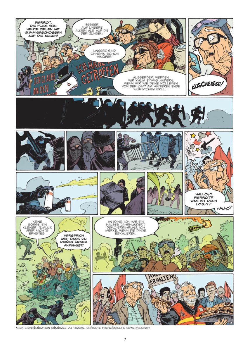 Die Frage nach dem gerechten Leben ist nicht ganz so einfach zu beantworten. (...) Spätestens dann, wenn die schwangere Nichte von Antoine eine Horde besorgter älterer Menschen anschreit, dass sie inkonsequent, rückschrittlich und bigott seien, weil sie Entwicklungsländer ausgehungert und die Ressourcen der Erde geopfert hätten. Zeichner Paul Cauuet steuert klare, hart konturierte Bilder bei, die den grotesken Humor der Geschichte wunderbar weitertreiben.