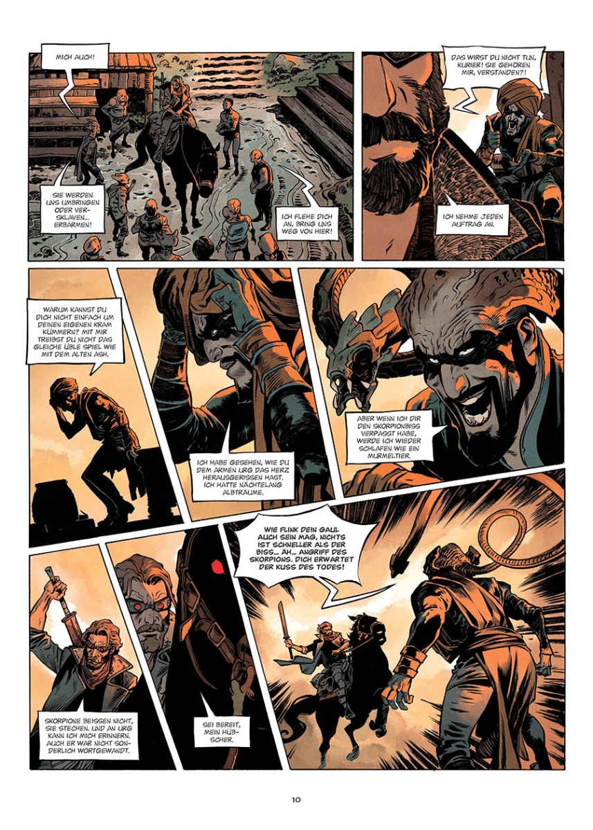 Irgendwo zwischen »Durango« und »Mad Max«, zwischen Wildem Westen und Postapokalypse – die Vorbilder von Autor Tristan Roulot sind offenkundig. Aber ein kompromissloses Story-Konzept und der feine Strich von Routinier Dimitri Armand macht diese Reihe zu einem willkommenen Farbtupfer im Endzeitgenre.
