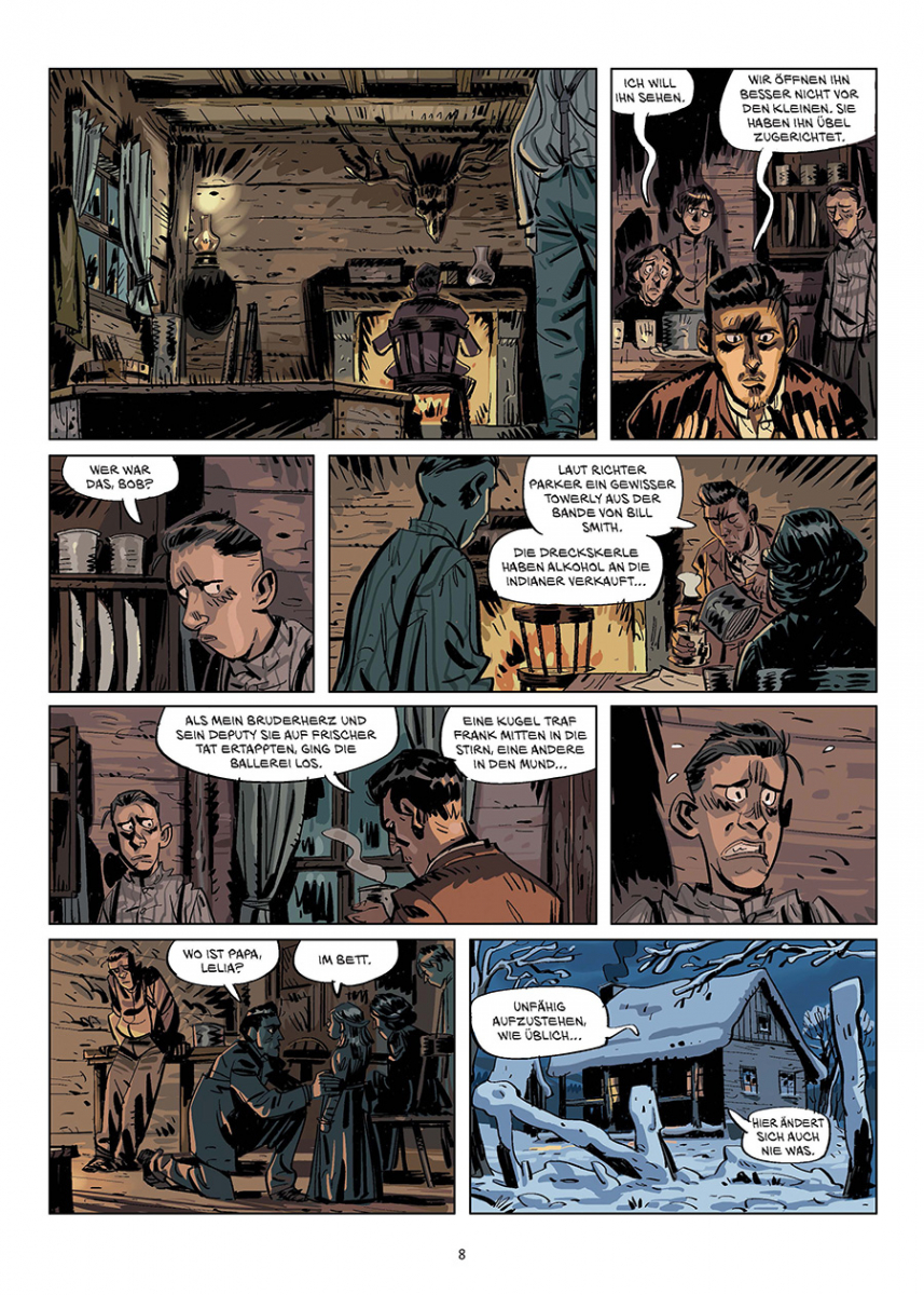 Der deutlich comichafte, dafür aber überraschend authentisch wirkende Stil bringt richtig gut Atmosphäre rüber, als Leser fühlt man sich tatsächlich in den Wilden Westen zurückversetzt