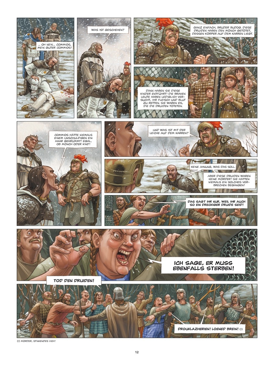 Das 5. Jahrhundert. Die Welt ist im Wandel begriffen und steht am Beginn eines ihrer größten Konflikte überhaupt: Das Christentum hat sich aufgemacht, die Welt zu erobern, und stellt sich den alten heidnischen Religionen entgegen. Im Schatten dieser Ereignisse liefern sich Druiden und Mönche einen unerbittlichen Krieg. Während die Bretonen die felsige Halbinsel von Aremorica, die nachmalige Bretagne, besiedeln, versuchen Gwenc’hlan, der letzte Druide dieser Region, und Taran, sein Schüler, ihr Volk aus der Schlinge der fanatischen Gegner zu befreien. Morrigan, eine Göttin aus der anderen Welt, steht ihnen bei dieser schwierigen Herausforderung hilfreich zur Seite. Verborgen zwischen den Relikten alter keltischer Bräuche lauert eine finstere und immer mächtiger werdende Bedrohung… Ein dichter und spannender Thriller, von Lamontagne in wunderschönen, detailreichen Bildern illustriert, die uns in die antike Welt der Kelten entführen.