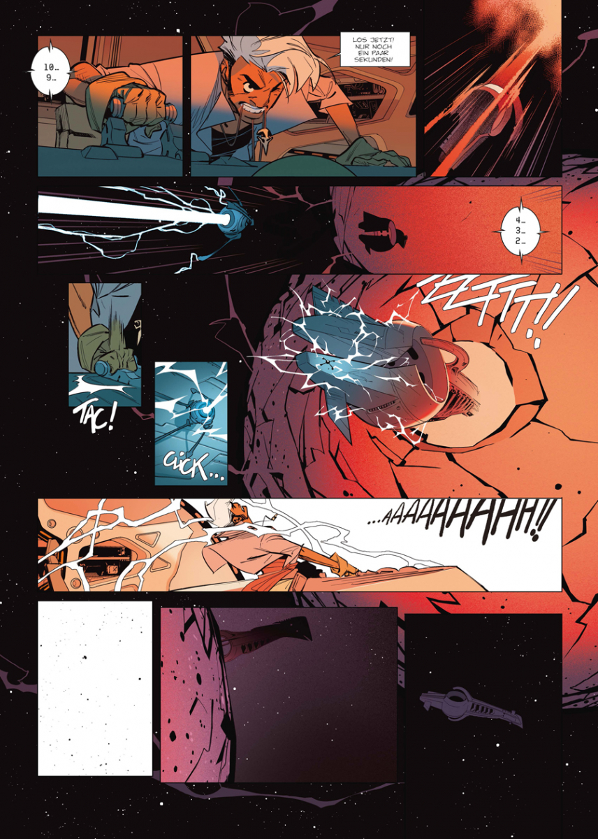Die Zeichnungen stammen von Adrián, dessen reduzierter, expressiver Stil cartoonhaft wirkt. Actionszenen sehen dadurch noch dynamischer aus. Der Stil überzeugt aber auch in ruhigeren Momenten, wenn die Figuren miteinander diskutieren, flirten oder die Probleme interstellarer Reisen erläutern.