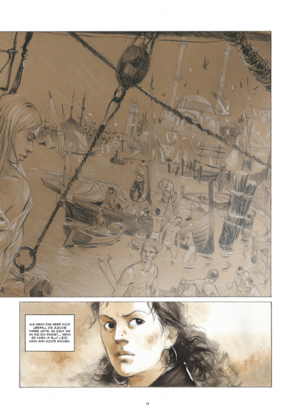 Emmanuel Lepage verwebt die kraftstrotzenden Ölkreidezeichnungen des Historienmalers, das bombastische Spektakel vom Beginn des Comics – und seine eher kühle und nachdenkliche Emanzipationserzählung um Salome Ziegler. Emmanuel Lepage liefert damit eine sehr eigenwillige und dichte Interpretation – und zugleich eine Liebeserklärung an das Meer.
