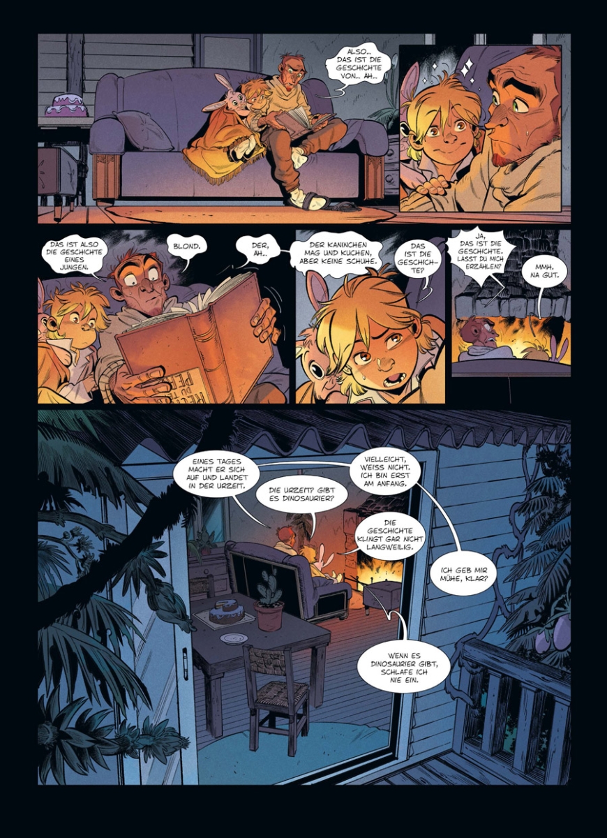 Nach einem gewaltigen Vulkanausbruch musste der gesamte Stamm an Bord eines behelfsmäßigen Bootes, eigentlich nicht mehr als ein Baumstamm, auf See fliehen. Franck war der letzte, der Leonardo und Klotzkopf lebend gesehen hat, und jetzt wird er beschuldigt, sie zum Sterben zurückgelassen zu haben. Er kann schließlich kaum erklären, dass die beiden in denselben Tümpel geplumpst sind, durch den er hergekommen ist, und sich jetzt im 21. Jahrhundert befinden! Viel Zeit zum Durchschnaufen bleibt dem Teenager so oder so nicht, denn ehe er sich versieht, wird er von einem Kannibalenstamm gefangen genommen, dessen Anführerin Unangenehmes im Schilde führt...