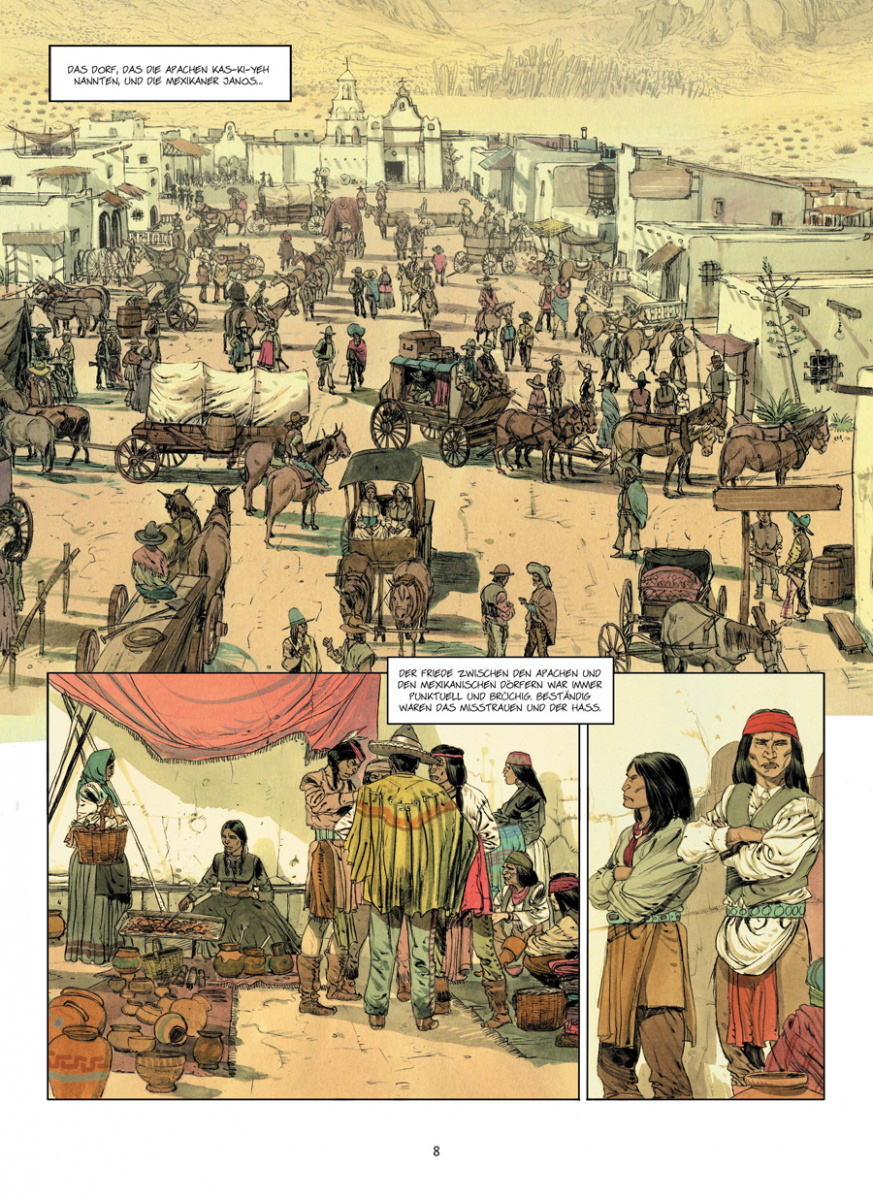 In »Geronimo« wird nicht groß rumgemacht, man wird sofort mitten ins Geschehen geworfen und ist quasi live dabei, wenn aus dem Medizinmann Goyathlay der Krieger Geronimo wird. Geworfen wird übrigens auch das ein oder andere Messer und das Blut spritzt hier auch munter vor sich hin - das sieht aber dank Jef so schön aus, dass da auch zarte Gemüter mit klarkommen. Ich bin mir sicher!