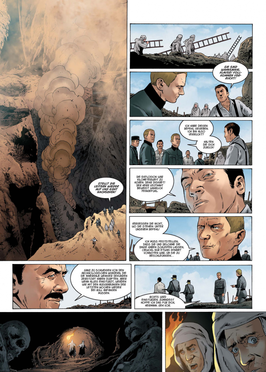 Der packende, klaustrophobische Dreiteiler »Heiligtum« von Xavier Dorison und Christophe Bec um die zunehmend verzweifelten Versuche einer U-Boot-Besatzung, dem mörderischen Totengott Moth zu entkommen, war gleich zu Anfang dieses Jahrtausends ein großer Horror-Erfolg. Die Vorgeschichte – wie und warum überhaupt ein archaischer Gott aktuell sein Unwesen treiben konnte –, das allerdings hatten Dorison und Bec seinerzeit nur kurz angerissen.