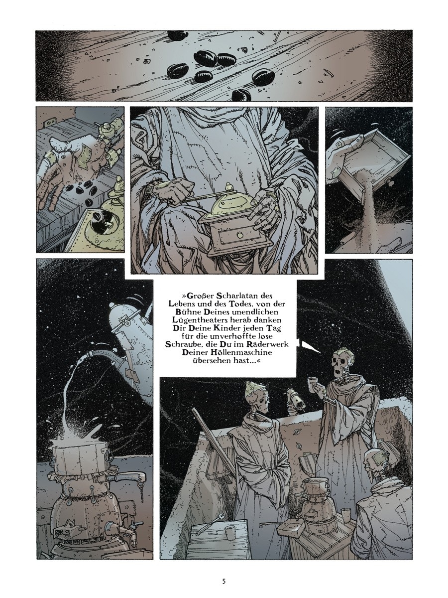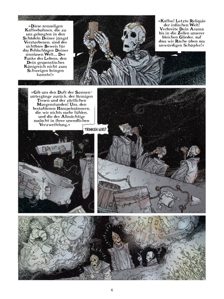 Ein fataler Sturz beim Tritt auf das im Badezimmer vergessene Spielzeugauto, und Victor Tourterelle findet sich kurzerhand auf der anderen Seite des Spiegels, in einer Kreidewüste, unter einem Himmel so schwarz wie Tinte wieder. Es herrscht Totenstille, keine Seele lässt sich blicken. Zwar erfreut sich Victor in seiner neuen Gestalt noch seines vollen Bewusstseins, doch von seinem Körper sind nur noch die Knochen geblieben. Mardi Gras Aschermittwoch, so lautet sein Name von nun an, hat keine Ahnung, dass er am Beginn eines der verrücktesten Abenteuer steht, das einem Verstorbenen in der jenseitigen Welt jemals widerfahren ist …