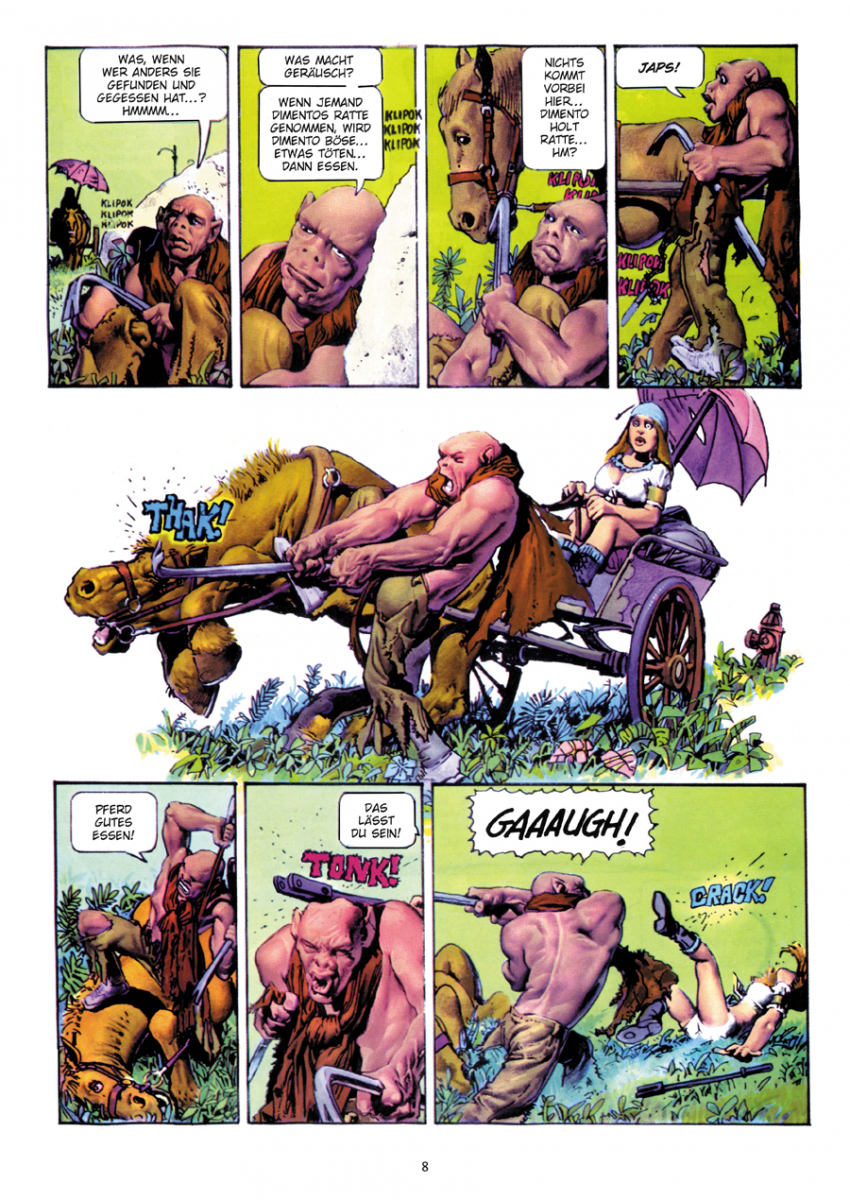 Höhepunkte der Comic-Erzählung sind gerade die stillen, lyrischen Momente, die in einer Welt voll grausamer Gewalt noch existieren und in denen Corben seine ganze Meisterschaft als Charakterzeichner wie als Erschaffer von Lichtstimmungen zeigen kann.