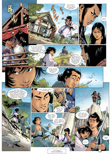 Sieben Söldner überfallen eine junge Frau, die sich gerade nichtsahnend eine Tätowierung stechen lässt – keine gute Idee. Am Ende sind fünf von ihnen tot und zwei auf der Flucht. Damit ist klar, dass es sich nicht um irgendeine harmlose Fremde handelt und dass zugleich jemand sehr großen Wert auf ihre Ergreifung legt. Solch mysteriöse, wenn nicht gar mystische Vorfälle sind in diesem exotischen Umfeld jederzeit möglich, einem mittelalterlichen Japan voller Magie, das den Rahmen abgibt für das Schauspiel, das sich dann mit »Samurai« voll entfalten wird – einem epischen Ringen um Macht und eine dramatische Selbstfindung.