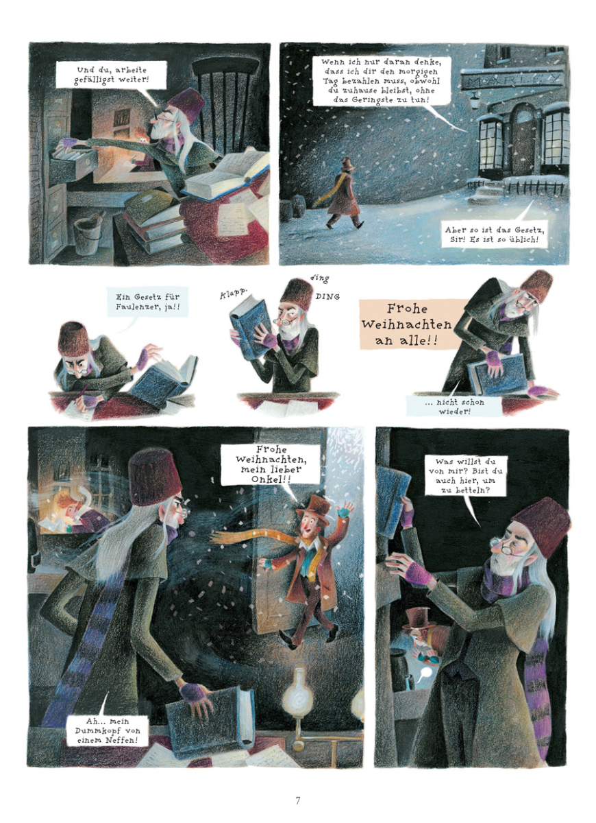 Alle Jahre wieder gehört Charles Dickens Weihnachtsmärchen zum Repertoire stimmungsvoller Weihnachtsunterhaltung. Auch diese Comic-Adaption hat nichts vom ursprünglichen Charme verloren und berührt mit Herzlichkeit und Wärme.