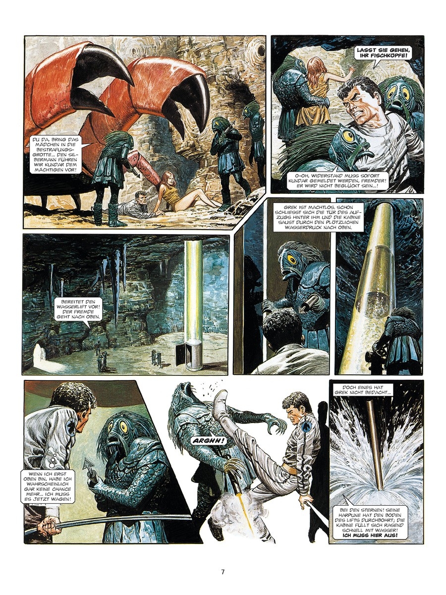 DER LEGENDÄRE VORLÄUFER ZU DEN STORM-ABENTEUERN! Die Science-Fiction-Serie »Storm« um einen Astronauten des 21. Jahrhunderts, der bei einem Routineflug tausende Jahre in die Zukunft geschleudert wird, ist längst ein Klassiker. Dieser Sonderband erzählt die Geschichte des Mannes, der quasi Storms Vorgänger ist: Kommandant Grek. Nur ein Abenteuer durfte Grek bestehen, an dessen Entstehung auch der spätere Storm-Szenarist Martin Lodewijk beteiligt war – danach verschwand der Kommandant wieder von der Bildfläche. Einige der Ideen aus »Grek« blieben aber erhalten und finden sich in Storm wieder. Nicht nur, dass der Titelheld genauso aussieht, auch eine rothaarige weibliche Begleitung findet sich bereits in »Kommandant Grek«. Hier reist der Held ebenfalls durch die Zeit, und auch, wenn dies im Gegensatz zu Storms Schicksal mit Absicht geschah, erwartet Grek eine ebenso unwirtliche wie gefährliche Zukunft…