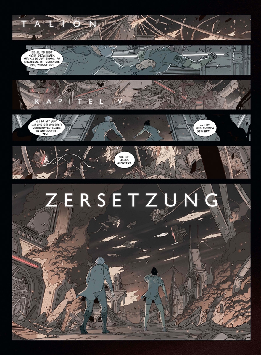 Sylvain Ferret verschreibt sich mit »Talion« einer Ästhetik, die er als »Gothic Cyberpunk« bezeichnet. Er öffnet für uns die Türen zu einer faszinierenden Welt, die wie ein dunkler Spiegel unserer eigenen wirkt. Verschwenderische Zeichenkunst sowie komplexe Charaktere und Themen machen diese Comic-Trilogie zu einem schwindelerregenden, süchtig machenden Erlebnis.
